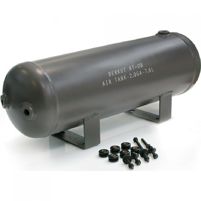 Ресиверы служат для накопления и хранения сжатого воздуха, а также для выравнивания давления в пневмосистеме. Ресивер БЕРКУТ АТ-08 это компактный резервуар для сжатого воздуха, расчитанный под рабочее давление до 150 PSI (10,5 Атм). Если у вас немного места в багажнике или вы не хотите жертвовать свободным местом — этот ресивер для вас! Баллон оснащен шестью установочными отверстиями, а внутри обработан специальным антикорозийным покрытием.